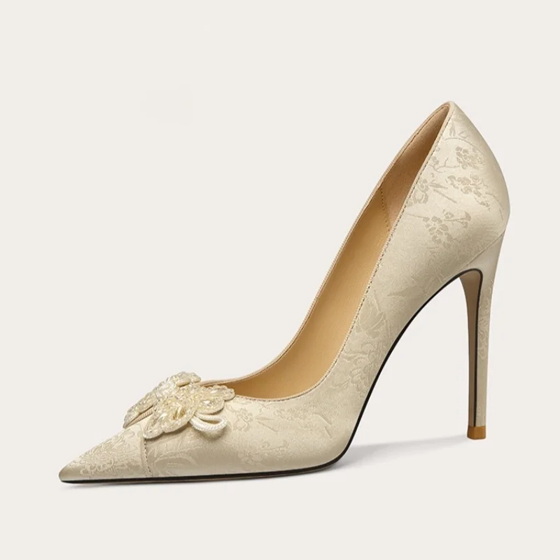 New Cocktail Dress Wedding Shoes Elegant New Chinese-style High Heels Traditional Chinese Single Shoes